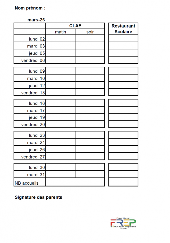 Inscription CLAE – Restaurant scolaire mars 2026 Vous devriez également aimer Menu du Restaurant Scolaire 22/01/2026 Auteur/autrice de la publication :Anne-Lise Publication publiée :06/02/2026 Post category:Clae / Restaurant scolaire
