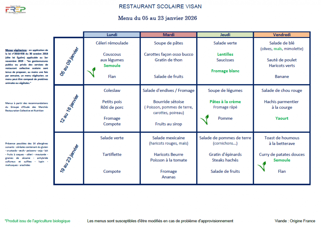 Menu du Restaurant Scolaire Vous devriez également aimer Vous avez la parole 04/12/2025 Un grand merci à tous ! 15/12/2025 Inscription CLAE – Restaurant Scolaire décembre 2025 21/11/2025 Inscription CLAE – Restaurant scolaire janvier 2026 11/12/2025 Restauration intergénérationnelle 08/10/2025 Auteur/autrice de la publication :Anne-Lise Publication publiée :11/12/2025 Post category:Autres / Enfants / Restaurant scolaire